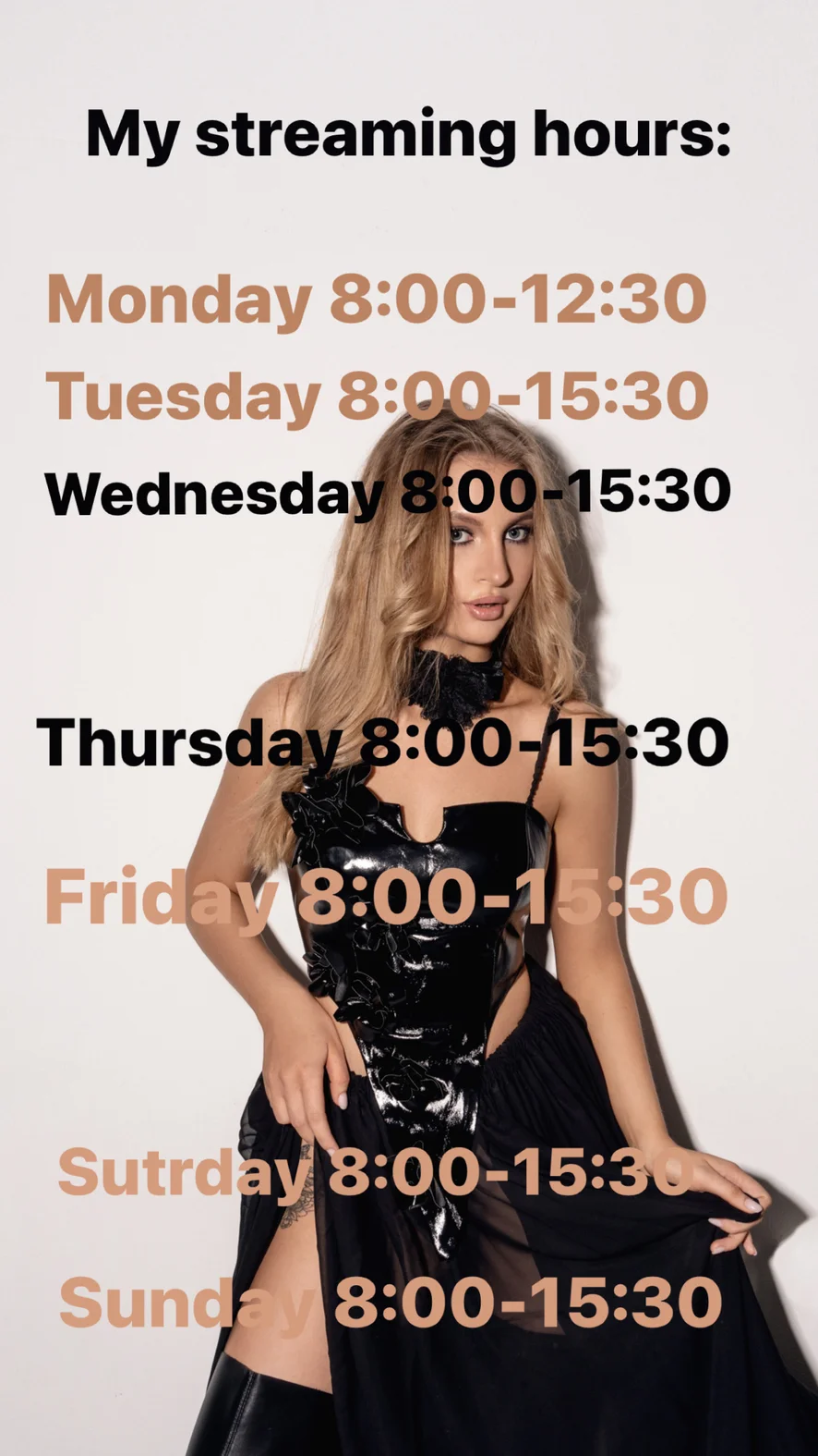 Ahegao, Dirty Talk, Smoking, Twerk, Spanking, Erotic Dance, Heels, Nylon, Latex, Mistress, Yoga, Foot Fetish, control toys 250 tk(10min), anal plug +100 tok, Humiliation, Topless, Striptease, Facesitting, Cowgirl, Upskirt, Orgasm, Blowjob, Fingering, Nipple Toys, Anal Toys, Camel Toe, Facial, oil show 100tk, Double penetration 500 tok, anal with dildo +300 tok, Deepthroat, Dildo or Vibrator, Shower, Hardcore, Flashing, Gagging, Leather, Masturbation, Cock Rating, Role Play, Sex Toys, Squirt